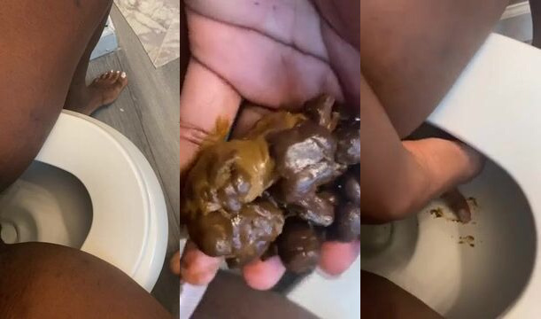 Watch this horny ebony babe scat and push pebbles into the toilet like a pro!