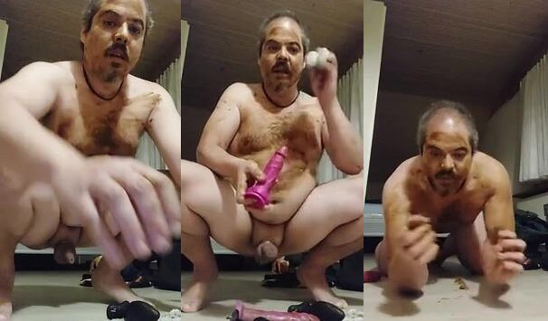 Get up close and personal with a filthy scat slave in a pooped-up video
