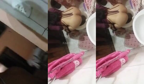 Watch this naughty girl humiliate herself in the bathroom with her pooped-out pussy