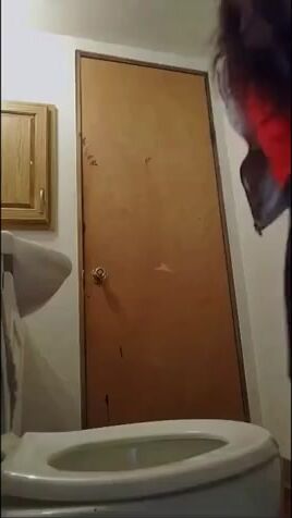Watch this cute girl get a golden shower while pooping in her toilet