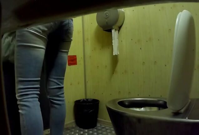 Kinky slut gets her scat wet and raw in public toilet