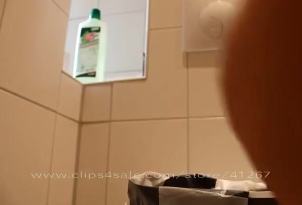 Blonde slut gets off on peeing on the bathroom floor