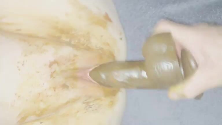 Watch this BBW slut get her ass drilled hard with a dildo and a lot of scat