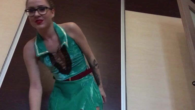 Femboy crossdresses and pees in the office chair