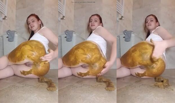 Watch this slutty girl squirt while masturbating and shitting in her own scat