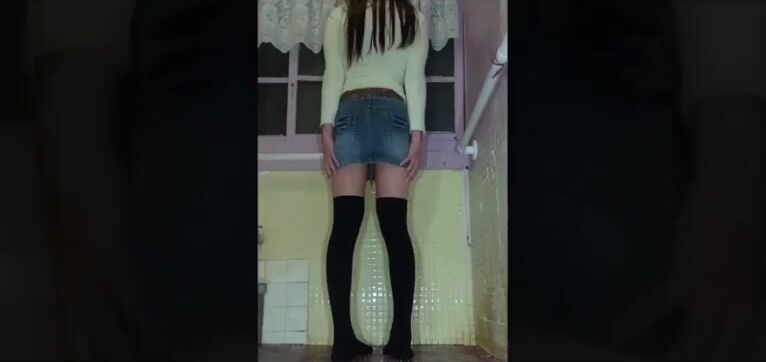 Watch this filthy slut scat and pooped out in her sexy stockings