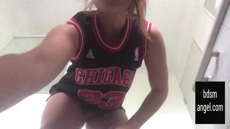 Bound slut squatting & stuffing panties with her scaty ass
