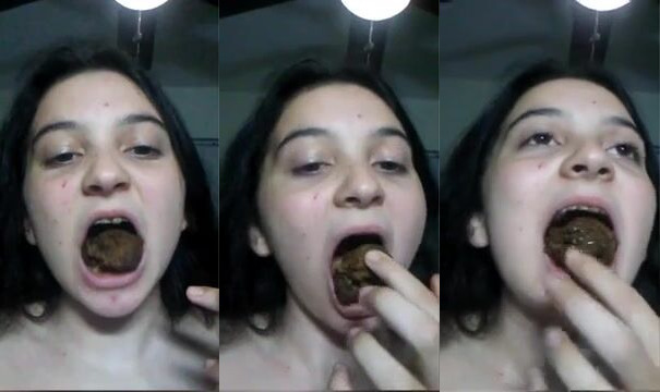 Watch this young slut devour her own turd like a pro in her own filthy video