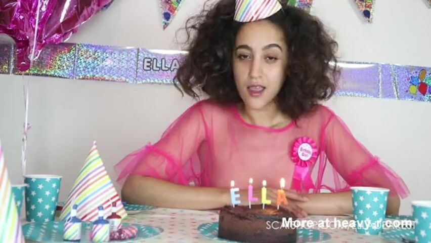 Birthday girl gets a taste of her own cum on a cake
