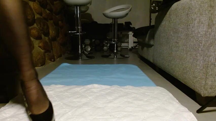 Watch as a hung dude gets drenched in his own pee and white panties