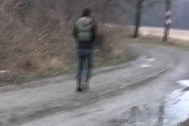 Watch this filthy girl piss and scat on a stone wall while playing with herself