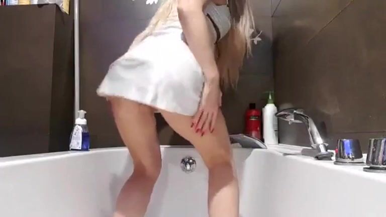 Watch this blonde slut get a big load of poo in her bathtub