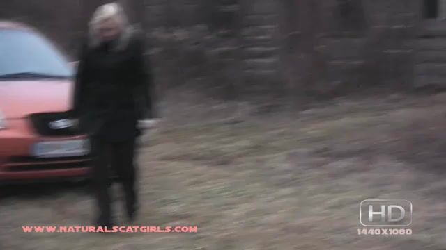 Watch this blonde slut get her backside pooped in the forest