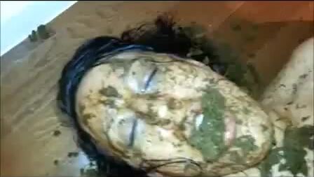 Mature slut smeared with tasty scat in her juicy body