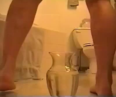 Watch as this voyeuristic guy pees in his own scat while watching his man's toilet