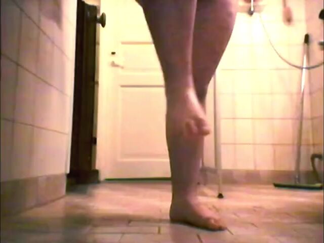 Naked guy smashes his own feet while pissing in public