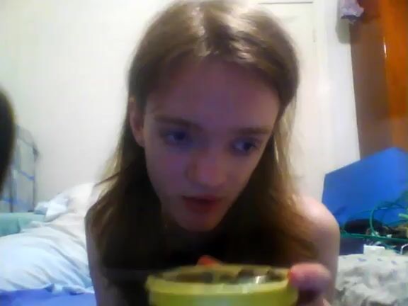 Cute teen devours scat and pudding in a delicious food play