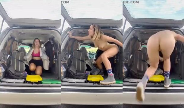 Naughty public shitting by the car with a view of her naked body