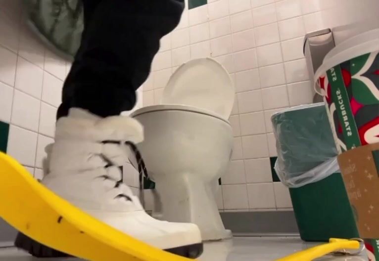 My golden toilet slave leaves a drop for my toilet fetish - I spank her ass