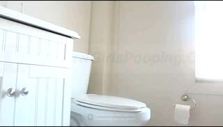 Watch this teeny voyeur pee & scat in her big ass toilet