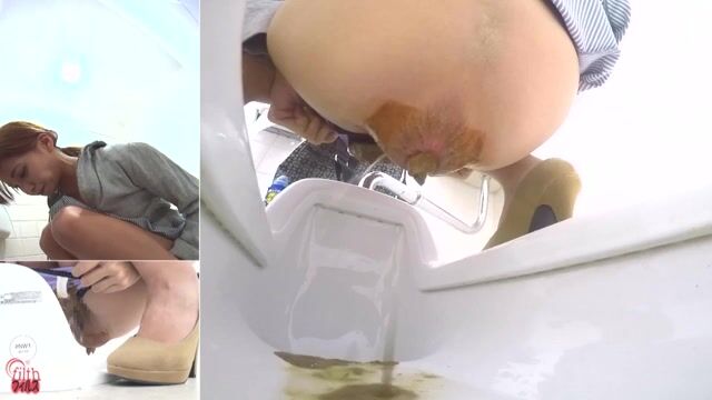 Watch this filthy slut scat in a squat toilet and get her enema fetish satisfied