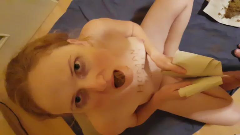 Watch this slutty babe get a mouthful of cake and scat on her own volition