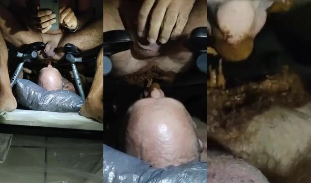 Watch this filthy scat video of a scat slave getting pumped full of cum