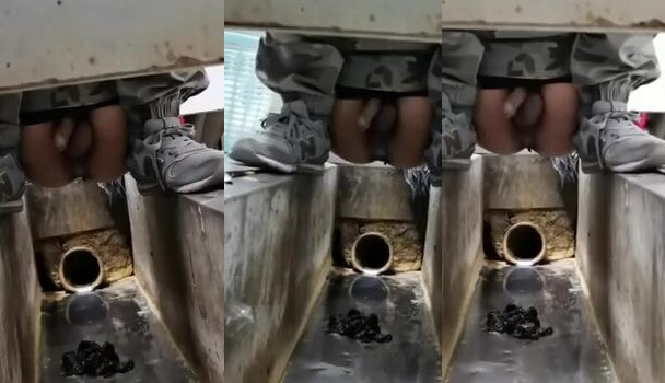 Watch this voyeuristic guy take a piss in the toilet like a pro